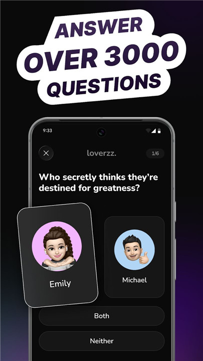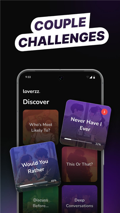 Loverzz introduces a unique gameplay concept where one partner answers questions while the other guesses. Matching answers earns points and reveals how well partners understand each other. This simple yet engaging mechanic transforms meaningful conversations into an enjoyable and rewarding experience.