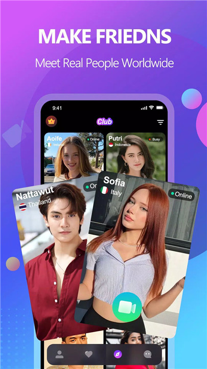 The app makes it easy to connect with people worldwide. Through profile cover photos and short videos, Meego helps discover potential friends with shared interests and makes reconnecting simple with quick call-back options.
