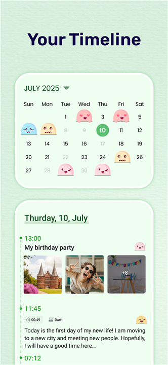• Attach photos or videos to your entries—your diary can now remember exactly how bad that haircut was.