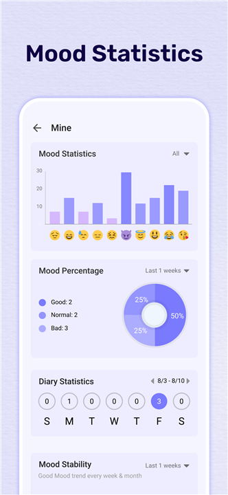 • See how your emotional rollercoaster plays out over time via the handy mood calendar.