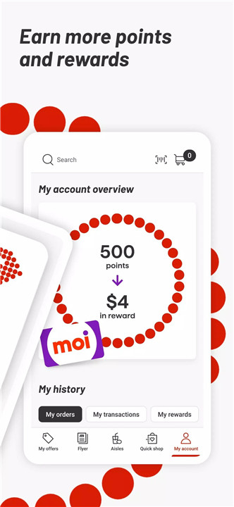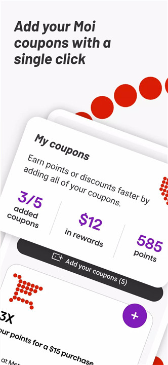 Moi Rewards lets you access personalized coupons, earn and redeem points, and keep your digital Moi card handy.