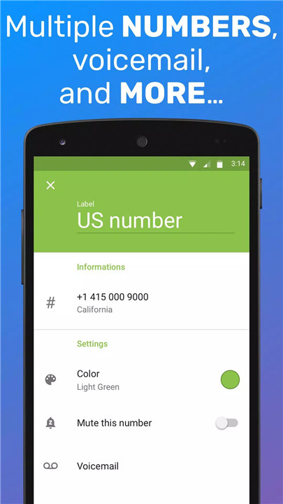 TextMe Up allows you to add multiple phone numbers and switch between them seamlessly within the app. You can also change any number or delete it if you no longer need it.