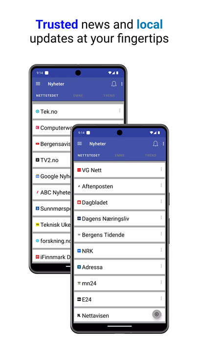 Norway News aggregates content from highly reputable Norwegian news outlets such as VG, Aftenposten, Dagbladet, NRK, TV2.no, and Bergens Tidende. It also provides access to international news sources, including BBC, Huffington Post, and CNET.
