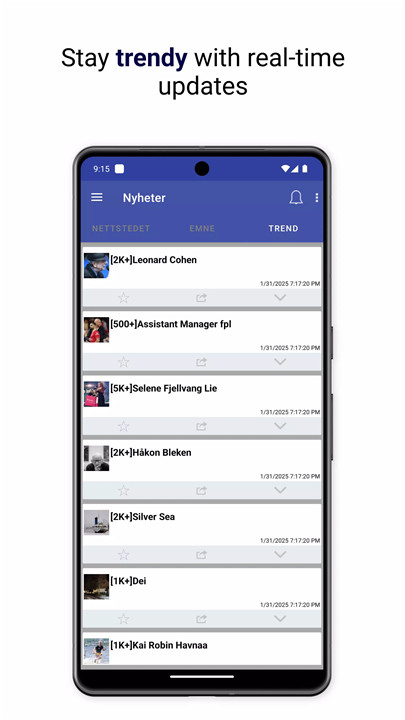 Stay up-to-date with events as they happen. Norway News highlights the latest trending topics in Norway and internationally, allowing users to follow breaking news and ongoing developments in real time.