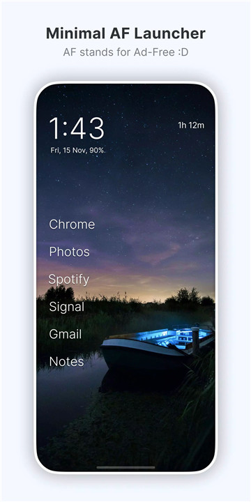 Olauncher is a minimalist AF Android launcher designed for users who want simplicity, privacy, and productivity. Stripping away unnecessary clutter, ads, and distractions, it transforms the home screen into a clean, functional space. “AF” stands for AdFree—emphasizing a distraction-free experience while keeping just the essential features to make your phone feel light, fast, and personal.