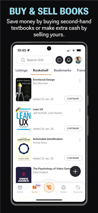 A: Yes, Orbi features a smart academic exchange where you can effortlessly list and sell your used textbooks to recoup some of your costs once a course is finished. Conversely, you can purchase required reading materials from your fellow students at a fraction of the retail price. This system not only makes education more affordable but also contributes to a sustainable campus economy by giving textbooks a second life.