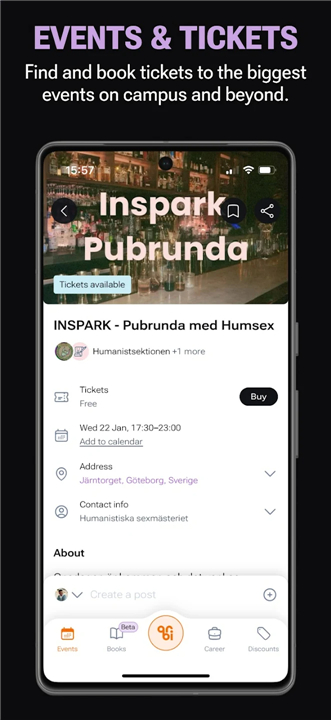 • Stay up-to-date with a comprehensive calendar of all campus events – from parties to workshops and seminars.