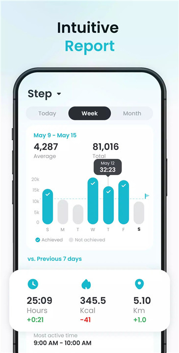 The app automatically tracks steps without requiring additional devices. Simply carrying a phone in a pocket, bag, or hand is enough to start counting. Its intuitive design ensures that step tracking begins effortlessly, making it accessible for everyday use.