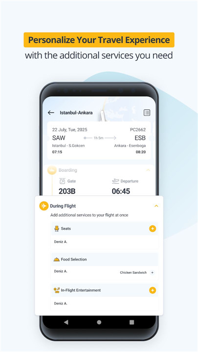 Pegasus App goes beyond flight bookings to provide full travel planning. Users can book hotels, B&B accommodations, airport transfers, rent cars, purchase travel insurance, and even send gift cards to loved ones. The “More Services” section centralizes these options, allowing travelers to plan trips efficiently from one app.