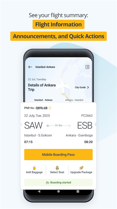 The app’s intuitive interface is designed to save time and simplify navigation. Flight searches, ticket comparisons, and fare monitoring are all accessible from a streamlined panel. Users can also manage reserved flights, check boarding passes, pay for extra luggage, and access previous travel history directly from the app.