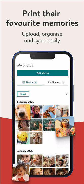 · Upload and organize photos from your phone, Facebook, Instagram, or Google Photos.
