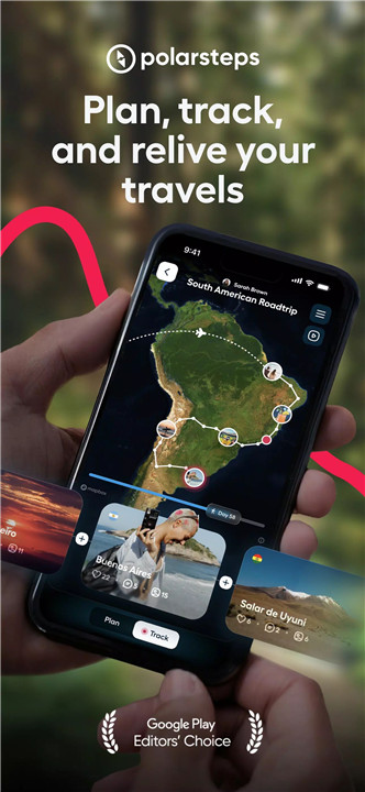 Polarsteps is a comprehensive travel app trusted by over 18 million travelers worldwide to capture, track, and share their adventures. It combines planning, tracking, sharing, and reliving journeys in one seamless platform. The app automatically records routes, locations, photos, and videos, producing a personalized digital world map unique to each traveler.