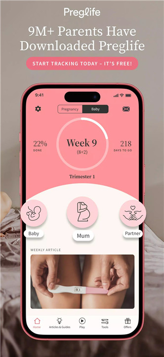 Preglife offers practical guides for every stage of pregnancy and early parenthood. Topics include breastfeeding techniques, car seat safety, vaccination schedules, insurance guidance, and more. The app also provides a dedicated Partner Section, offering tips, activities, and support for partners throughout the pregnancy journey.