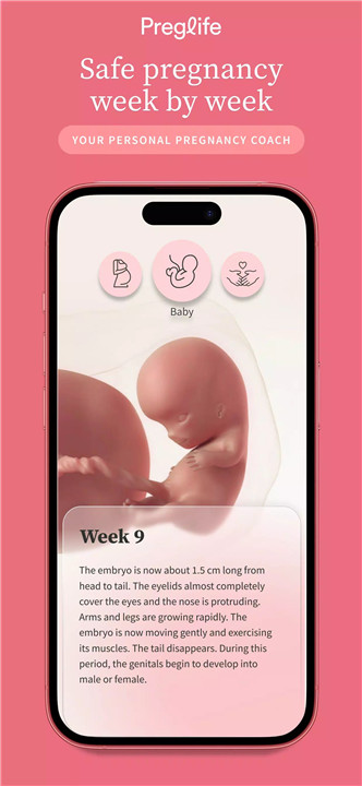 Introducing the new Preglife brand, designed with your pregnancy in mind. Embrace a new palette of colors, explore even more curated content to accompany you, and enjoy a smoother navigation for effortless tracking of your pregnancy and your baby's development.