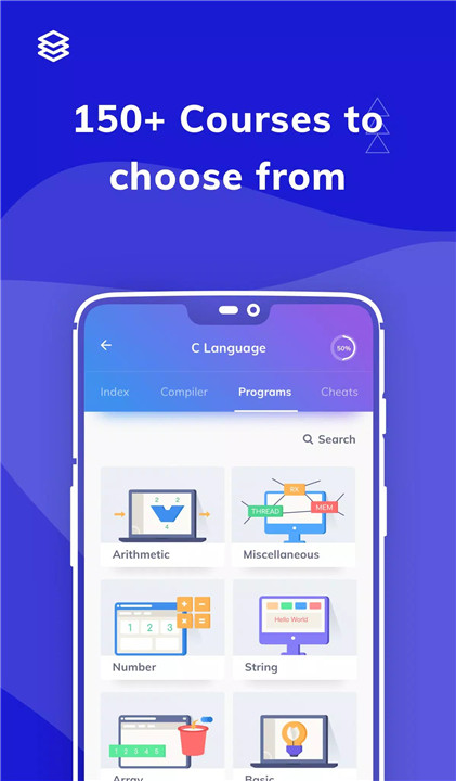 Programming Hub is a coding education app that helps learners study programming languages through interactive courses, code examples, and a built-in compiler.
