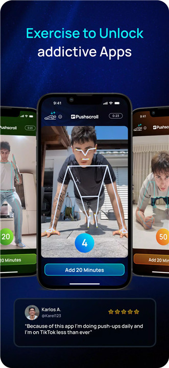 Unlike traditional screen time apps that rely solely on willpower, Pushscroll creates a positive feedback loop. You’ll WANT to exercise to earn scrolling time, replacing unproductive habits with physical activity. Users often report craving pushups instead of endless scrolling after just two weeks.