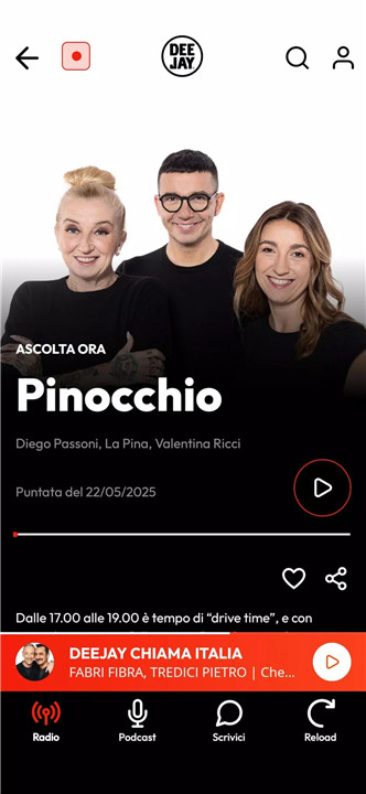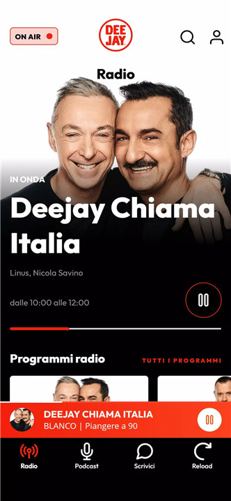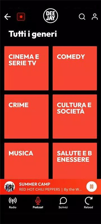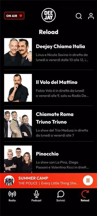 The Radio Deejay app is a mobile platform for live radio streaming, on-demand episodes, and original podcasts from Radio Deejay.