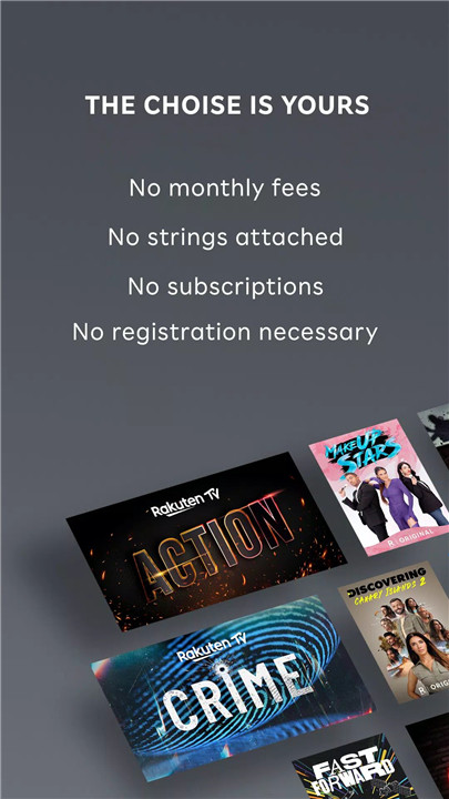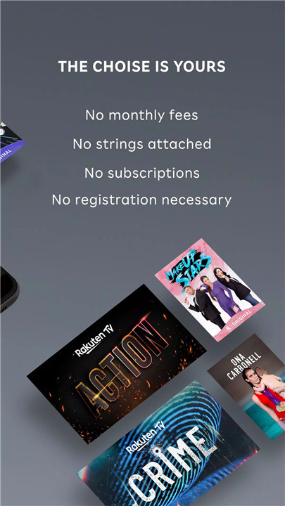 No, Rakuten TV does not require a subscription. You can stream free content or choose to rent or buy premium movies and series.