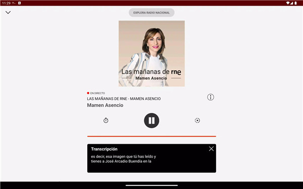 The home screen provides quick access to the live broadcasts of all RNE stations, including Radio Nacional, Radio Clásica, Radio 3, Ràdio 4, Radio 5 and Radio Exterior. The presenters currently on air are displayed, and listening begins instantly with a single click. Exclusive streaming content such as concerts, sports broadcasts and special programs is also available.