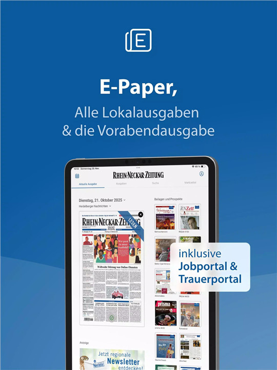 Subscribers can access the RNZ e-paper in its original print layout, optimized for smartphones and tablets. The digital edition mirrors the familiar structure of the newspaper while adding the flexibility of mobile reading. Access includes eight local editions, along with supplements and brochures, offering complete regional coverage.