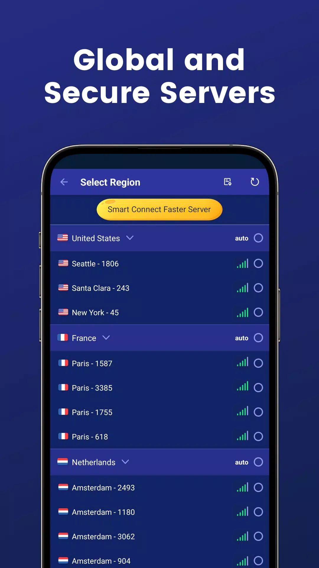 Choose from multiple free VPN geo locations, making Rocket VPN ideal for users who want to access region-specific content or maintain privacy while traveling across different continents.
