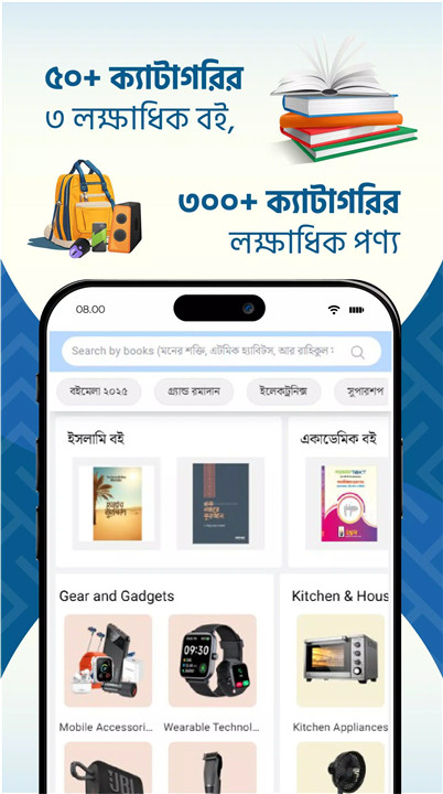 The Rokomari app is more than a bookstore — it's a complete online superstore. Explore diverse product categories like: