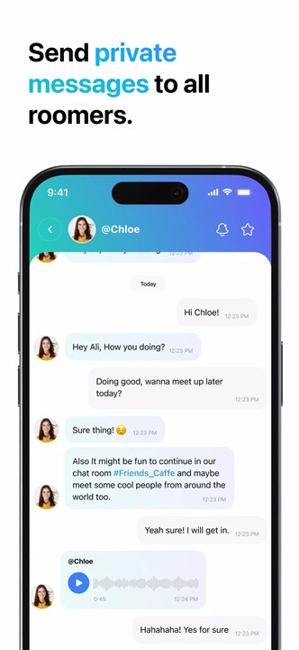 Continue conversations one-on-one with secure private messaging. Save your favorite rooms and users for quick access anytime with personalized favorites.