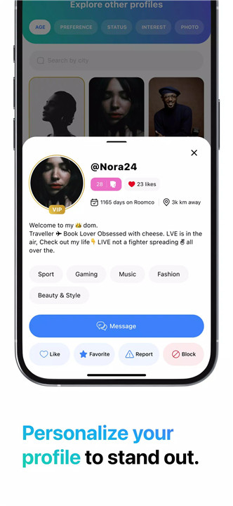 Find your community quickly using Roomco’s advanced filters based on age, preferences, and interests. The instant grid view shows who’s online nearby, making it easy to spot and engage with new people.