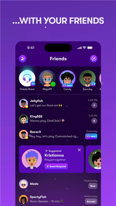 Rune sends push notifications when your friends are online or start playing, so you can hop in and join the fun right away.