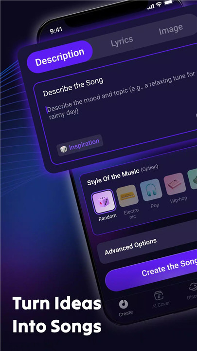 Upload a photo, and the AI will generate a song inspired by the mood, theme, or details of the image. This innovative feature turns memories, art, or ideas into custom melodies effortlessly.