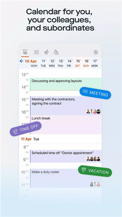 — Colors for different events (work days, business trips, leaves, etc.) are now consistent across all views: in the calendar, in schedules, and reports. This makes everything more visual and easier to understand.