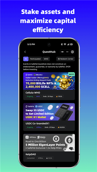 • SafePal Earn: Put your assets to work and generate rewards through integrated staking solutions.