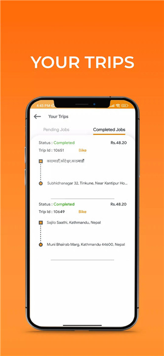 Keep tabs on your trip ratings, acceptance rate, and more. The Sajilo Rider app gives you full visibility into your performance to help you grow and earn better.