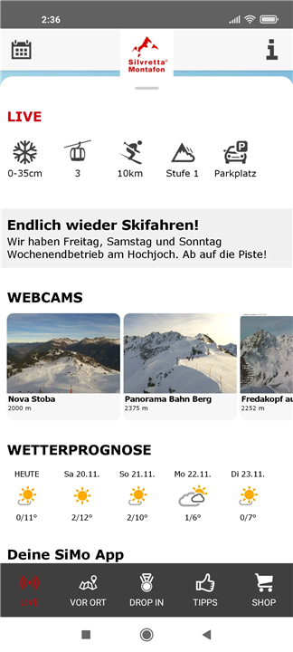 A: Absolutely. SiMo keeps you informed about weather forecasts, snow depth, lift opening times, and even live webcam views so you can check conditions and avoid crowded lifts.