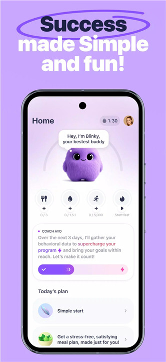 Unlike apps that rely on charts and strict tracking, Simple combines AI coaching, intuitive nutrition guidance, and playful motivation from Blinky to make fitness, weight loss, and healthy habits fun, engaging, and sustainable.