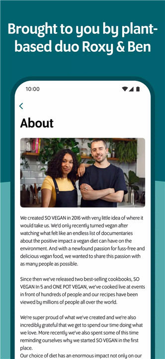 SO VEGAN is created to make plant-based cooking simple and enjoyable, this app brings together a wide variety of nutritious and flavorful recipes suitable for all lifestyles. Developed by the well-known cooking duo Roxy and Ben, SO VEGAN has grown into a global platform with millions of followers and best-selling cookbooks. The app provides an accessible way to explore plant-based eating, whether the goal is improving health, trying new dishes, or adopting a more sustainable diet.