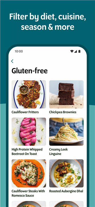 Recipes can be filtered based on dietary needs such as low-calorie or high-protein options. The app also allows searching by ingredients already available, making it easier to create meals without unnecessary shopping.