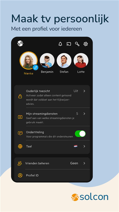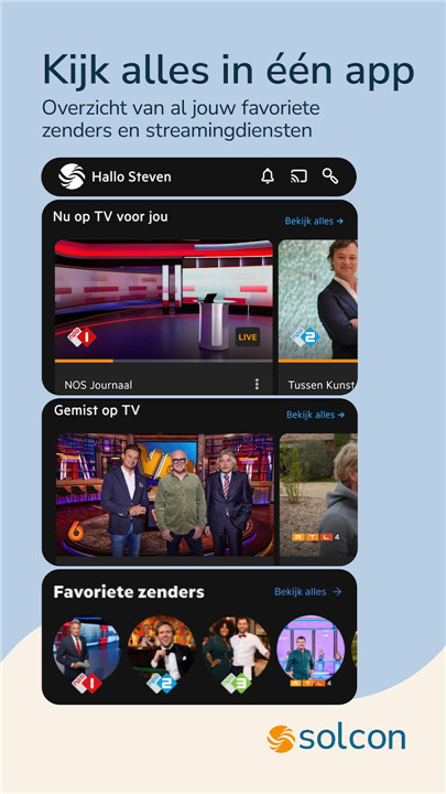 Solcon TV+ offers live TV, catch-up TV from up to seven days ago, and access to streaming services—all in one app.
