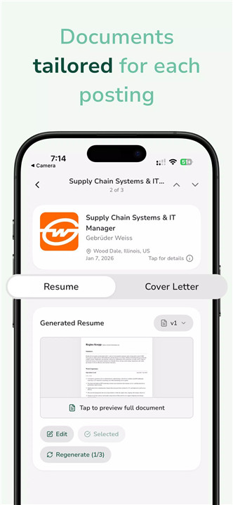 Yes. Users can review and edit resumes and cover letters before submitting an application. This step is optional and can be skipped if faster applications are preferred.