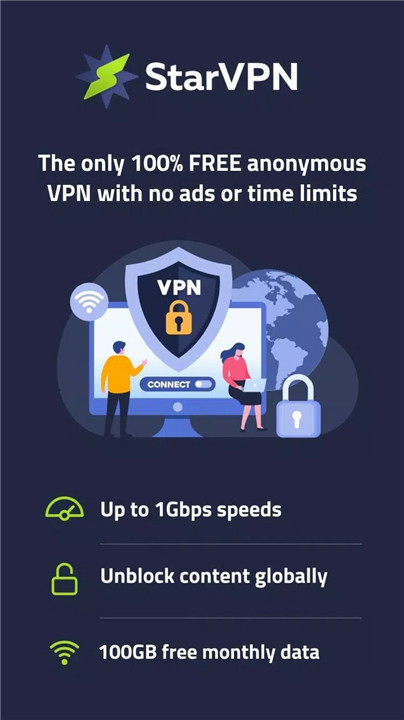 StarVPN is the best free VPN designed to provide you with complete online privacy and security. With no registration required for the free version, you get access to 100GB of encrypted data every month, keeping your personal information safe from ISPs, hackers, and trackers. Plus, with global server options and advanced protocols, you can browse, stream, and work online without limits or worry.