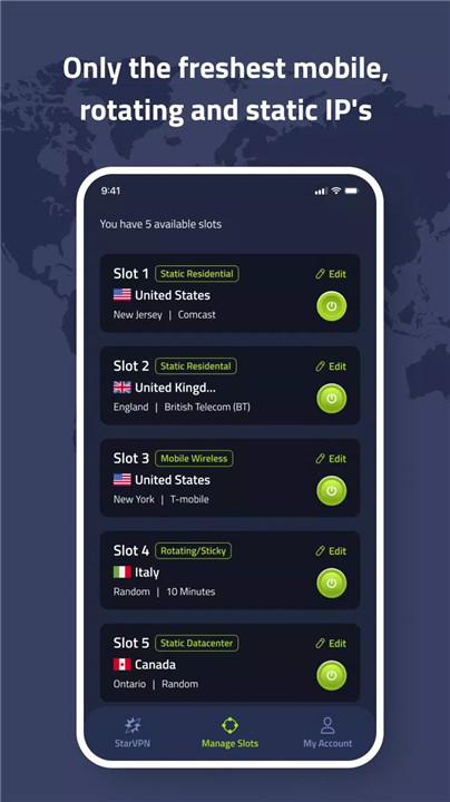 Upgrade to StarVPN's paid plan for unlimited data and access to millions of rotating IP addresses across 60+ countries. Benefit from fast, static residential IPs, mobile IPs, and advanced features like Kill Switch, Split Tunneling, and synchronization across multiple devices. The paid plan supports OpenVPN and Wireguard protocols, ensuring top-tier performance and security.
