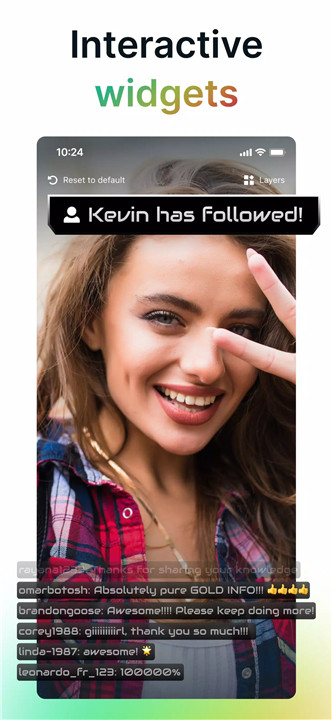 Audience interaction is enhanced with integrated widgets such as Alert Box, Chat Box, Event List, Goals, and more. These tools highlight new followers, tips, and milestones in real time, encouraging engagement and community growth.