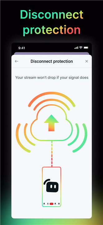 With Disconnect Protection, the stream remains online using a temporary screen instead of going offline, helping maintain viewer presence.
