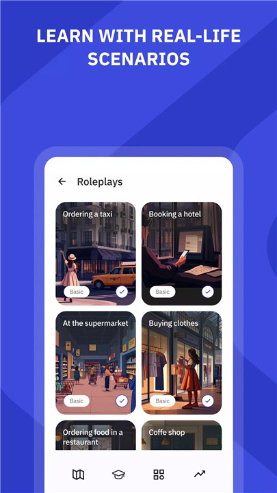 · Roleplays & Characters: Interactive real-life scenarios and character-based conversations