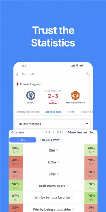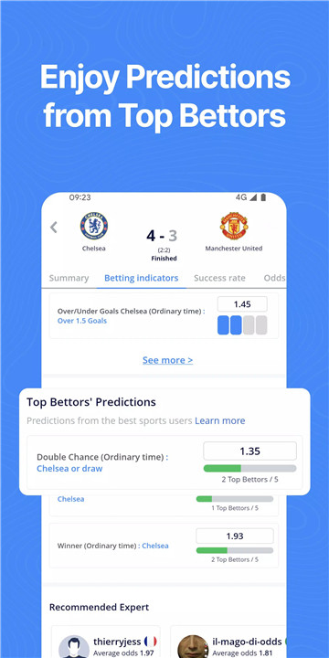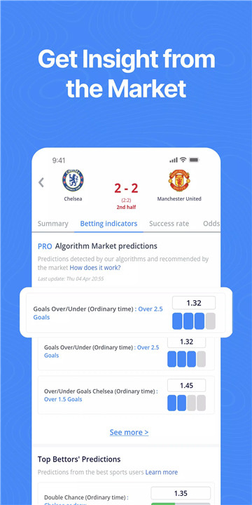 · Includes odds comparison, graph tracking, and prediction sharing.