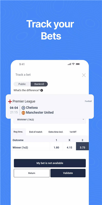Track your wins, losses, and betting history with ease. The Bankroll Manager helps you maintain financial discipline, analyze your performance, and fine-tune your betting strategy for long-term success.