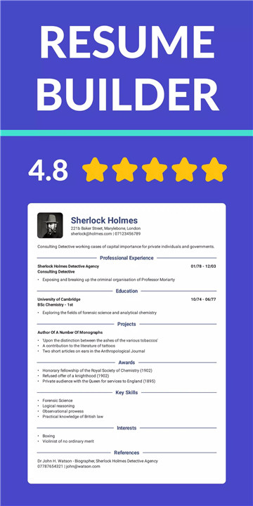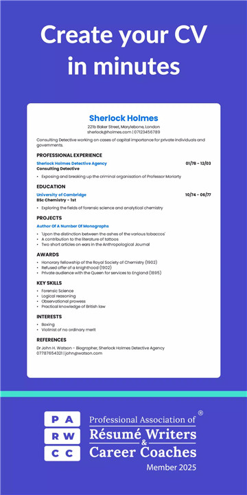 Download your CV as a PDF or share it via email, Google Drive, or other platforms. The app makes it easy to send resumes to employers or seek feedback.