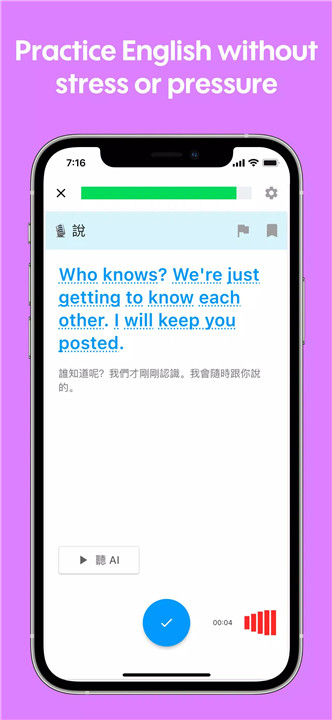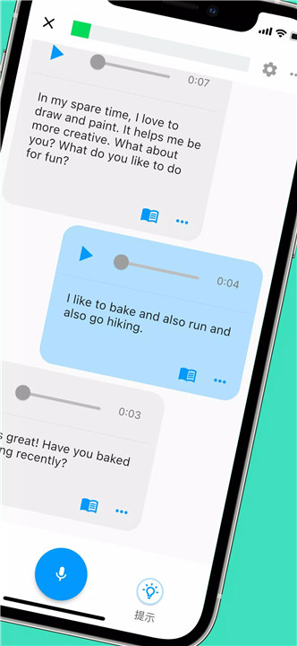 Toko encourages relaxed practice, allowing users to take their time responding without worrying about mistakes. Conversations can be replayed at a slower speed or displayed with text and translations to ensure understanding. This approach makes English learning stress-free and enjoyable.
