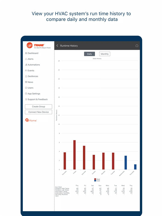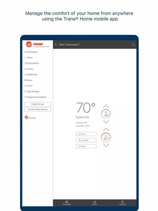 Yes. Trane Home supports geofencing, which uses your device’s location to update HVAC settings automatically, helping save energy and maintain comfort without manual input.