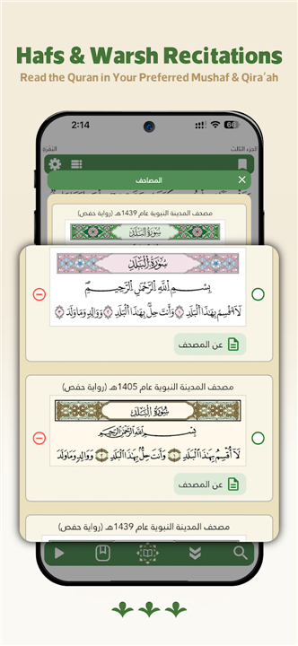 • Choose your path of study with authentic Hafs and Warsh scripts from the King Fahd Complex.